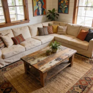 A farmhouse living room shouldn’t look formal. It should feel like people actually sit there. Comfort is non-negotiable in this style, and it’s one of the reasons it’s so popular.